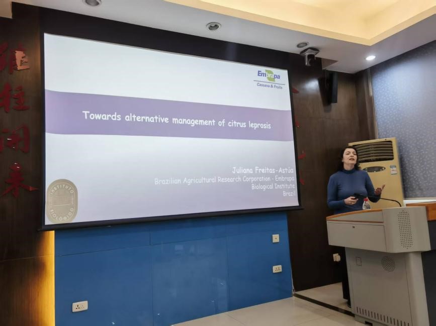 应西南大学柑桔研究所和柑桔主要病虫害持续控制基础研究学科创新引智基地(111计划)邀请,2025年12月26日,巴西植物病理学会主席、巴西国家农牧业研究院(Embrapa)高级研究员Juliana Freitas-Astúa博士到访我所开展学术交流。