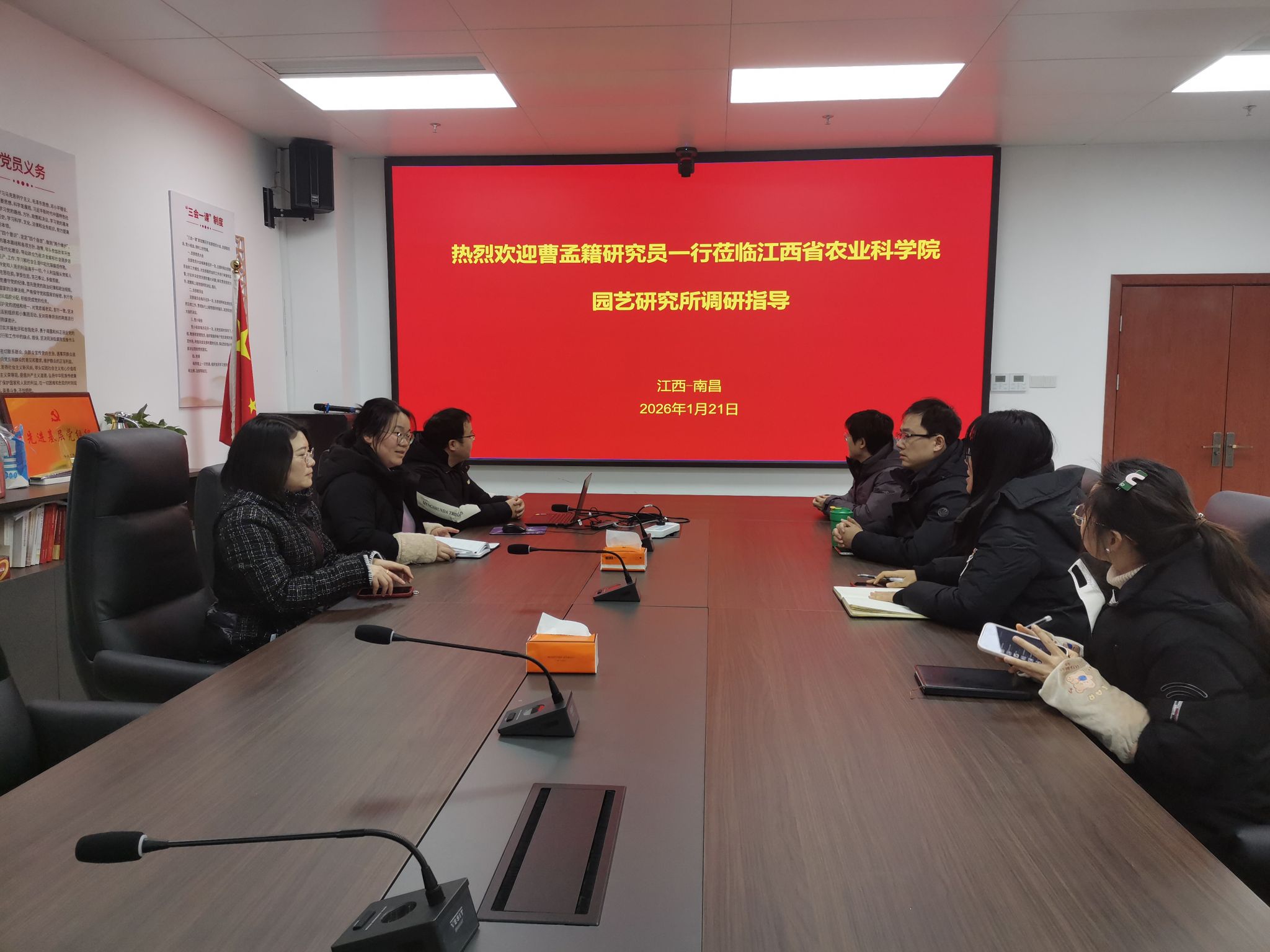 为深化所地科技协同合作,精准对接柑桔产业高质量发展需求,1月21日,我所副所长曹孟籍研究员带队前往江西省农业科学院园艺研究所(以下简称“江西农科院园艺所”),开展专题学术交流与实地调研考察。江西农科院园艺所党总支书记、所长胡新龙,副所长胡钟东等出席交流会议。我所国家柑桔苗木脱毒中心刘学东副研究员及国际合作与人才培养科科长赵娟一同参与此次交流调研活动。