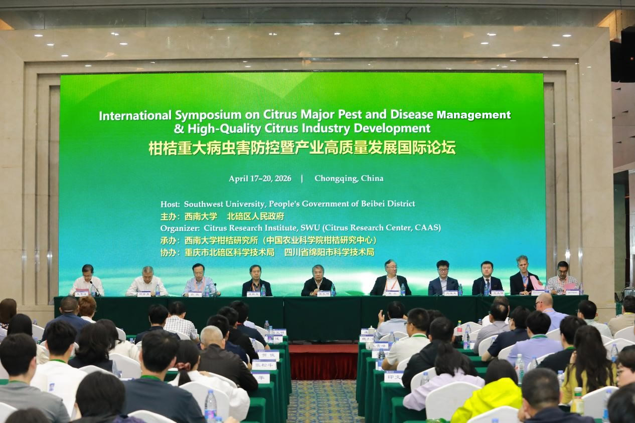 4月18—19日,柑桔重大病虫害防控暨产业高质量发展国际论坛在重庆北碚举行。本次论坛由国家“111”学科创新引智基地、教育部学科突破先导项目和重庆市院士工作服务中心项目支持,西南大学、北碚区人民政府主办,西南大学柑桔研究所(中国农业科学院柑桔研究中心)承办,重庆市北碚区科技局、四川省绵阳市科技局协办,旨在进一步推动柑桔重大病虫害灾变机制合作研究,提升防控水平,推进柑桔产业高质量发展,来自中国、澳大利亚、巴西、南非、意大利、黑山等国的知名病虫害防控专家与参会代表等150余人参加了本次论坛。