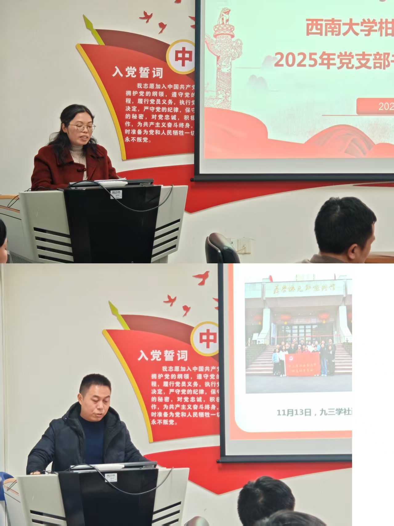 会议还邀请了我所民主党派代表参加并交流工作。九三学社西南大学四支社副主委崔永亮、民革西南大学三支部主委许兰珍总结了年度工作情况及下一年工作计划。