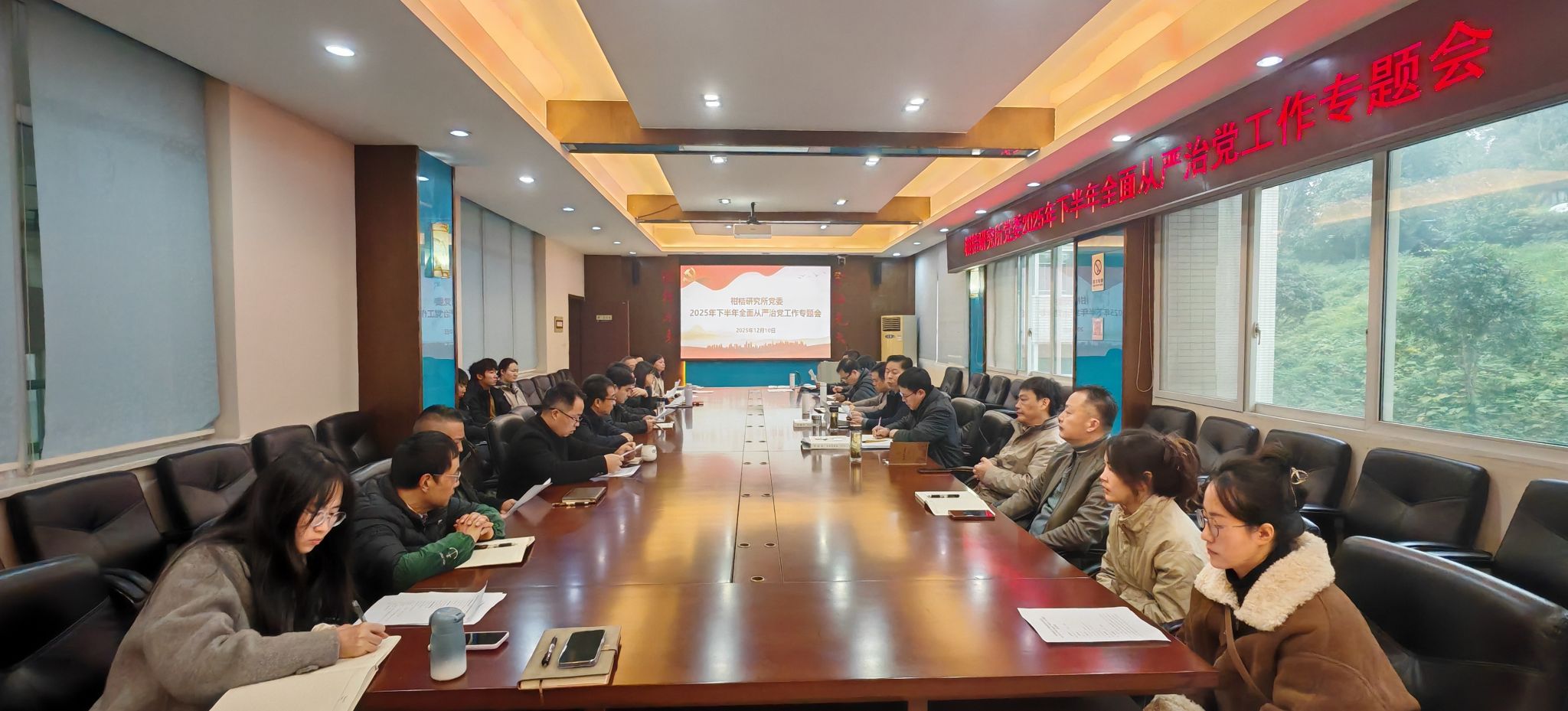12月10日,我所召开2025年下半年全面从严治党工作专题会议,深入学习贯彻习近平总书记关于党的自我革命的重要思想,总结回顾年度工作,系统谋划未来发展。所党委委员、纪委委员,各党支部书记及支委,全所科级干部、中心负责人参加会议,所党委副书记、纪委书记刘昭暾主持会议。