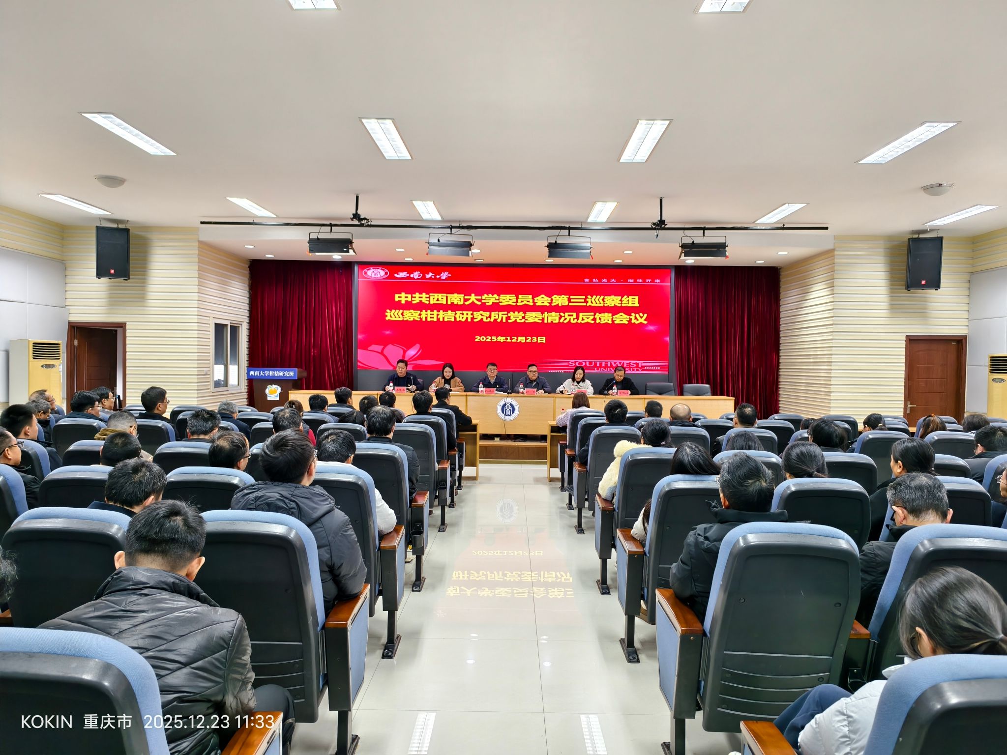 按照学校党委巡察工作的统一部署,12月23日上午,学校党委第三巡察组巡察柑桔研究所党委情况反馈会在综合大楼六会议室召开。学校党委副书记、纪委书记、巡察工作领导小组副组长嵇绍岭,第三巡察组组长、校纪委委员、教师教育学院党委书记郭亮,校纪委副书记、纪委办主任、巡察办主任徐天虹,第三巡察组副组长、人力资源部副部长干婷,党委巡察办巡察综合科科长唐昊坤出席会议。所领导班子成员、全所职工、离退休职工代表和学生代表参加会议。所长王雪峰主持会议。