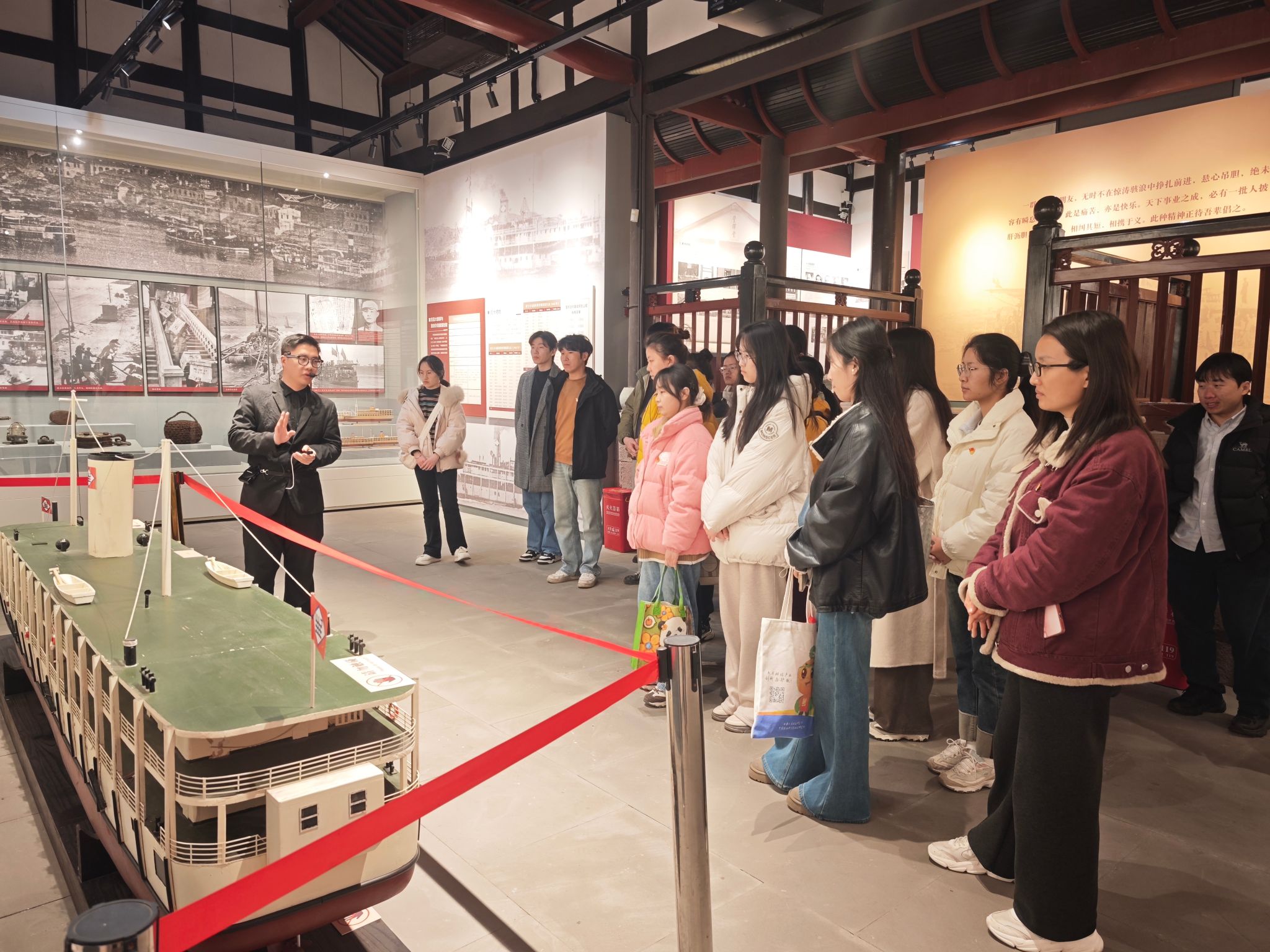 卢作孚纪念馆位于北碚区朝阳街道文星湾一巷,馆内以图片、文字、实物、影像展陈为手段,分四个展区系统展现卢作孚勤奋求学、实业救国、乡村建设、抗战救国的历程。在讲解员的深情讲述中,同志们有序参观了各个展厅,深入了解卢作孚先生“没有个人,只有事业”的奉献人生。从他白手起家创办民生公司,实施“化零为整”整合长江航运,到抗日战争时期组织举世瞩目的“宜昌大撤退”,保存了中国民族工业的命脉;从他倾力投身乡村建设与教育事业,提出“愿人人皆为园艺家”的理想,到一生践行“忠实地做事,诚恳地对人”的信条,其爱国情怀、实干精神、卓越胆识与清廉品格,深深打动了在场的每一位党员。