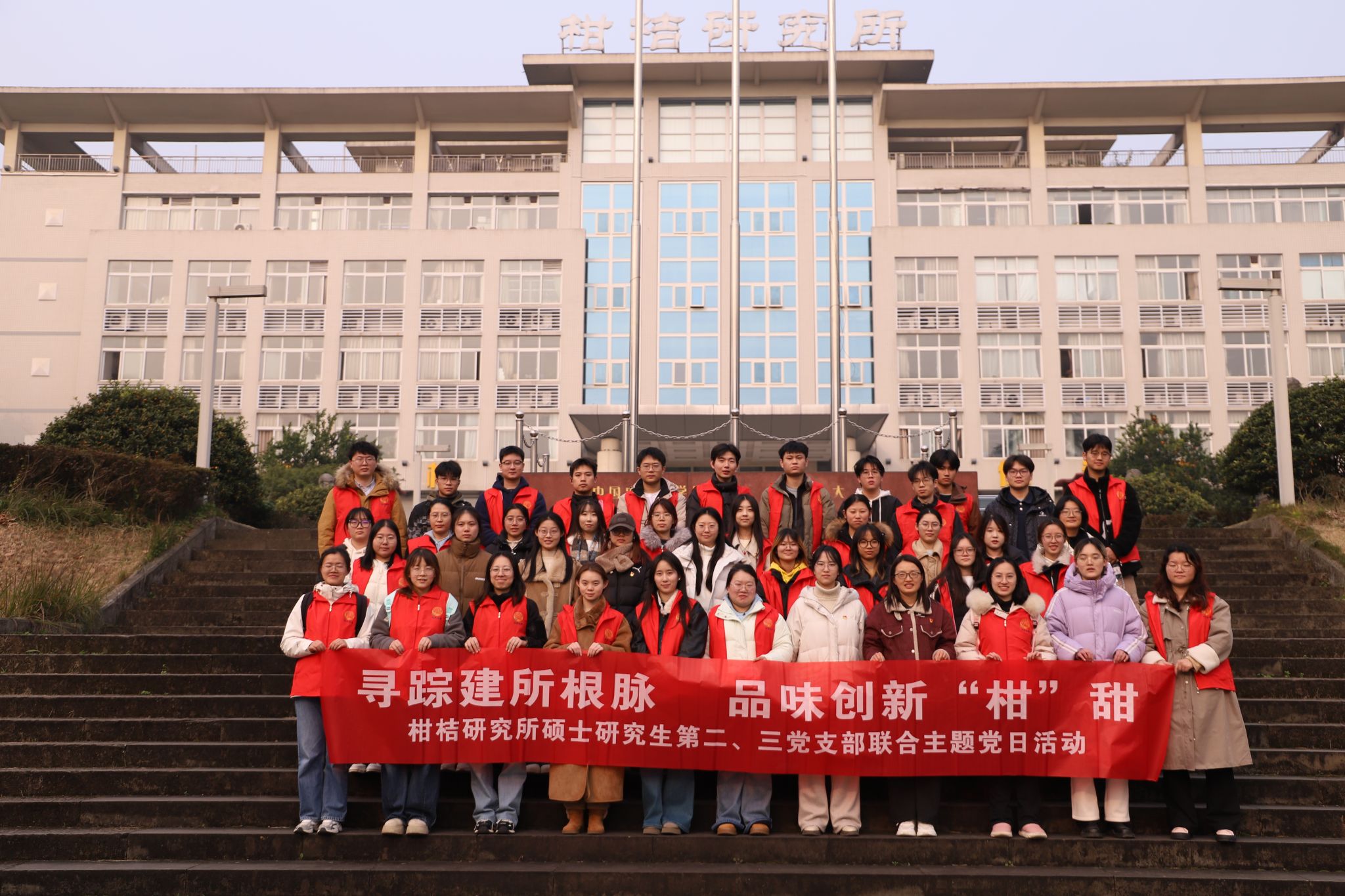 为深化理论武装,传承先辈精神,激发青年党员的科研初心与使命担当,2026年1月14日,硕士研究生第二、三党支部以“寻踪建所根脉,品味创新‘柑’甜”为主题,在所内开展联合主题党日活动。活动融合理论学习、志愿服务、先辈缅怀、成果品鉴四大环节,将思想淬炼与实践体验深度结合,引导党员在回望历史中凝聚力量,在感知创新中勇担使命,推动党建工作与学科发展同频共振。
