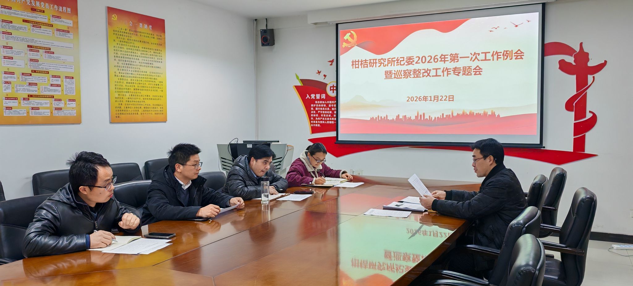 1月22日下午在综合楼三会议室,所纪委召开2026年第一次工作例会暨巡察整改工作专题会,所党委副书记、纪委书记刘昭暾主持会议,全体纪委委员参加会议,会议开展了理论学习,并研究部署了巡察整改等工作。