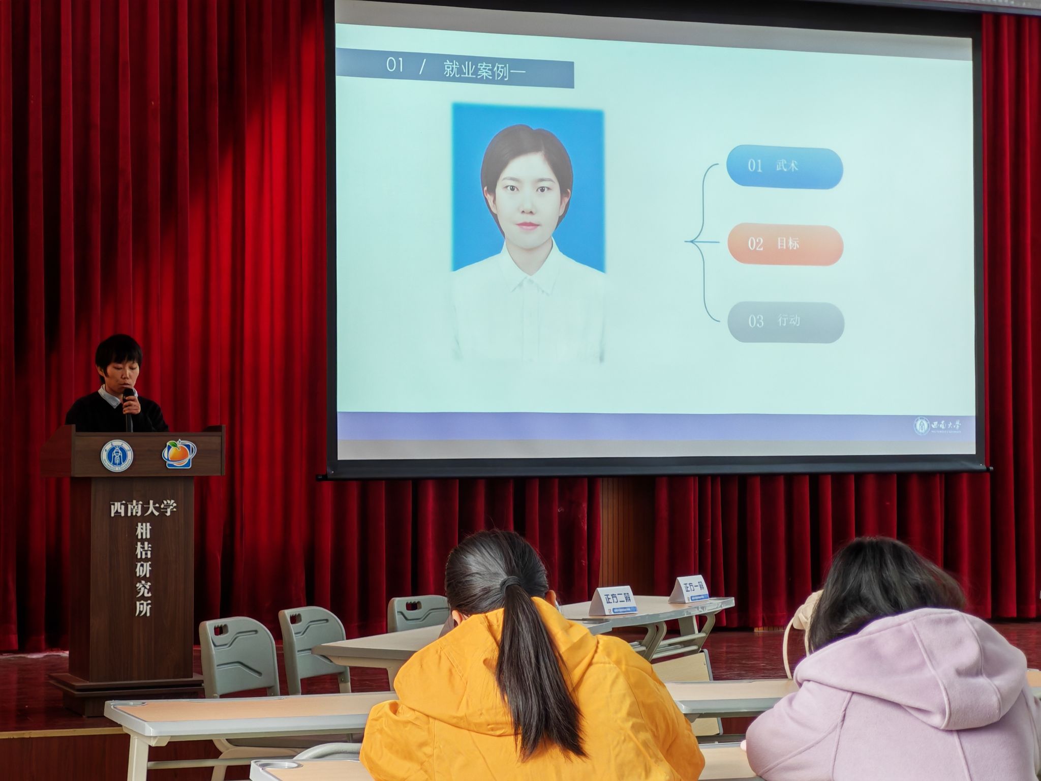2025级资源利用与植物保护专业硕士研究生王梦霞围绕《实现个人与职业规划的理想匹配与持续发展》这一主题,以职业规划为主线,从自我认知、环境评估、目标设定与行动路径四个维度展开分享。她融合个人经历与理论框架,在学术与职业两个方面提供了清晰的规划思路。