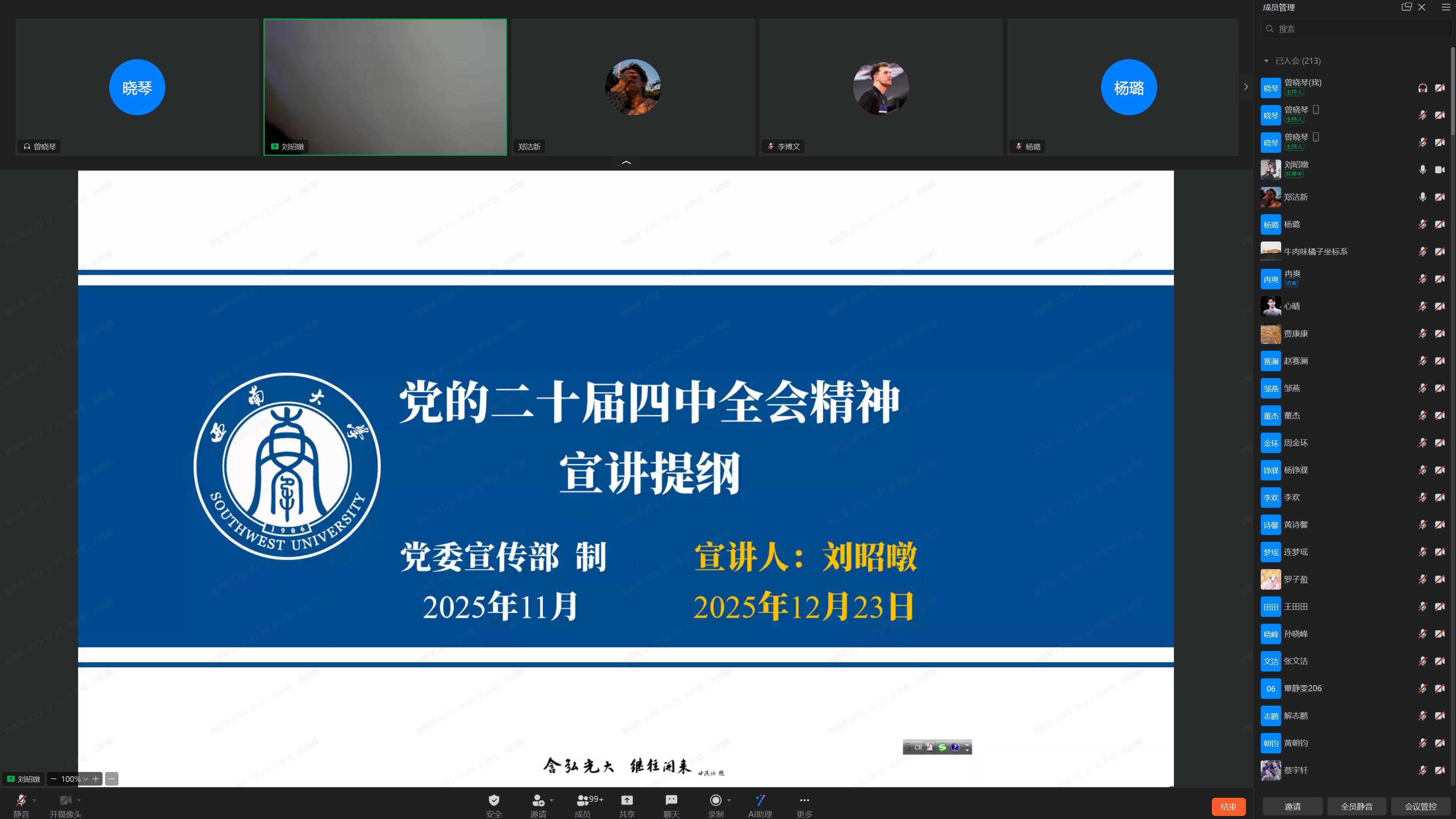 12月23日下午,我所召开了全体研究生大会,开展加强岁末年初学生安全教育,同时深入学习贯彻党的二十届四中全会精神。