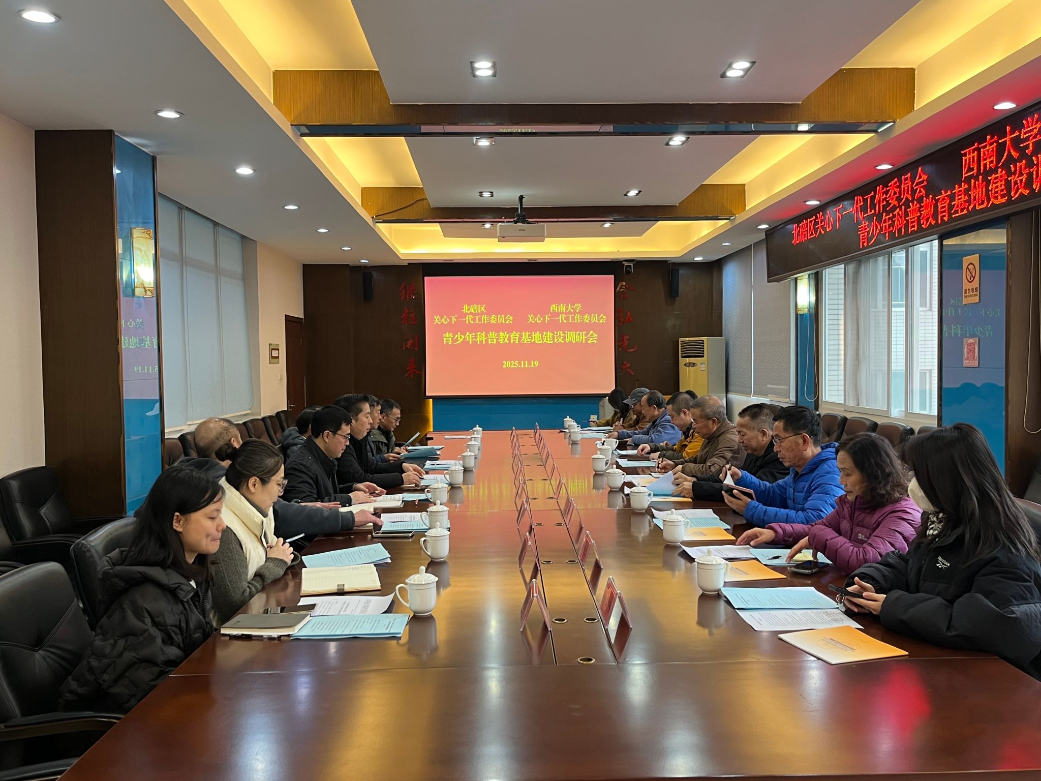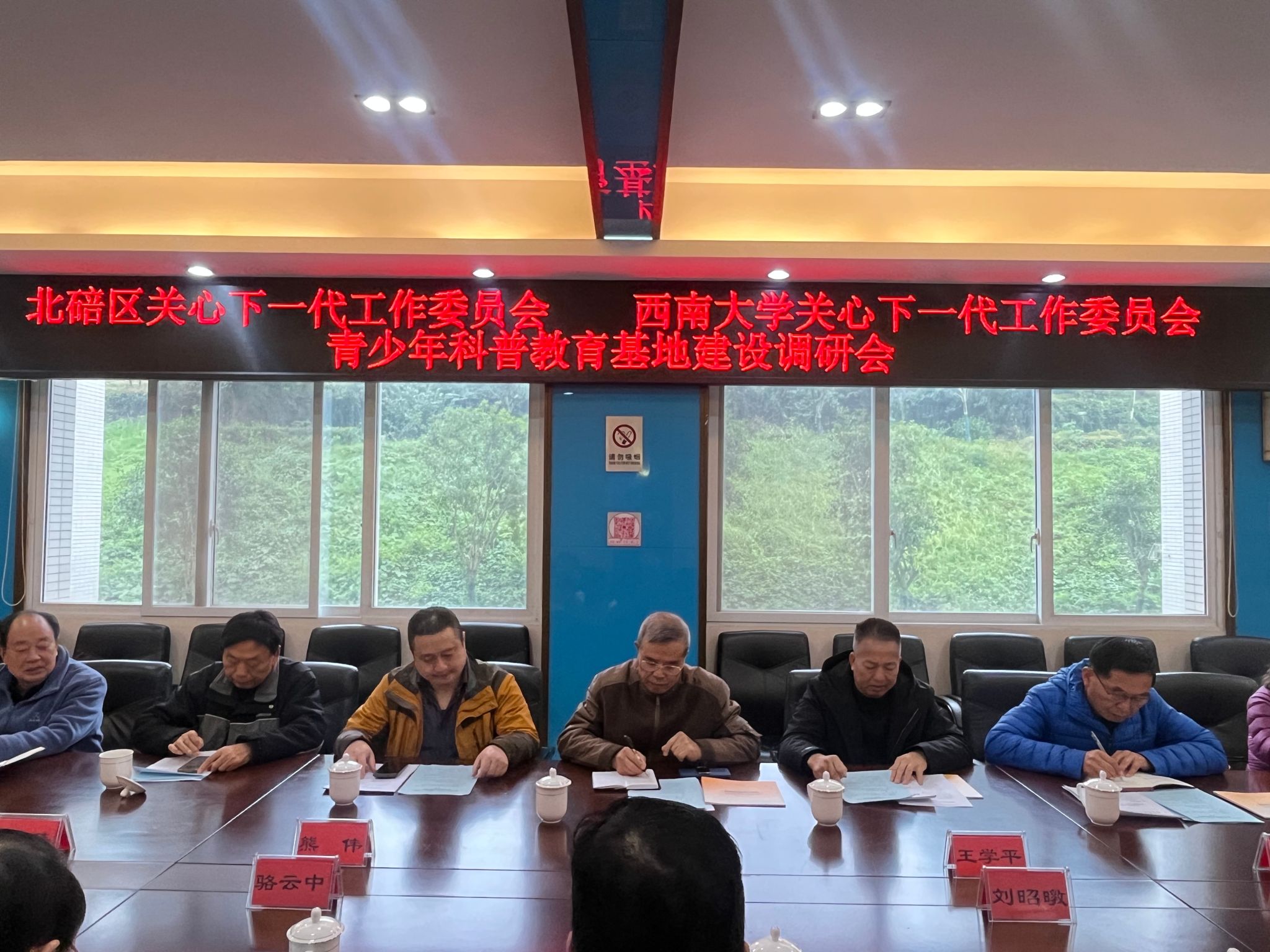 西南大学关工委副秘书长鲜宗广主持本次会议,指出在国家对重庆行政区划调整的背景下,北碚区响应国家战略决策,关工委应着眼科技服务,乡村振兴主旋律,引导青年一代学好科学,用好科学,秉持关工委“急党政所急、想青少年所需、尽关工委所能”的工作方针,通过本次调研,落实科普教育基地建设,更好的为我区社会经济建设做出贡献。