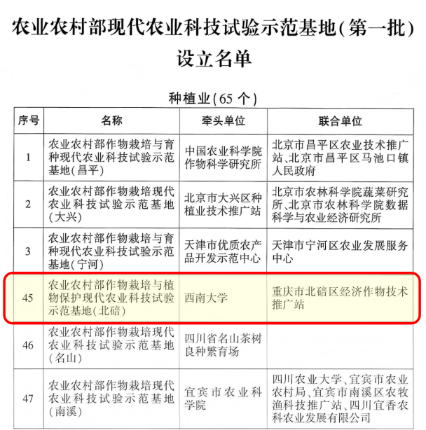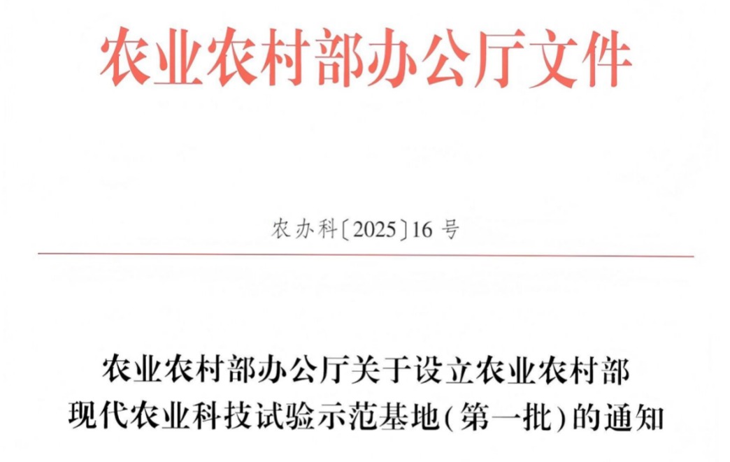 近日,农业农村部印发《农业农村部办公厅关于设立农业农村部现代农业科技试验示范基地(第一批)的通知》(农办科〔2025〕16号),由我所牵头申报的“农业农村部作物栽培与植物保护现代农业科技试验示范基地(北碚)”成功入选。