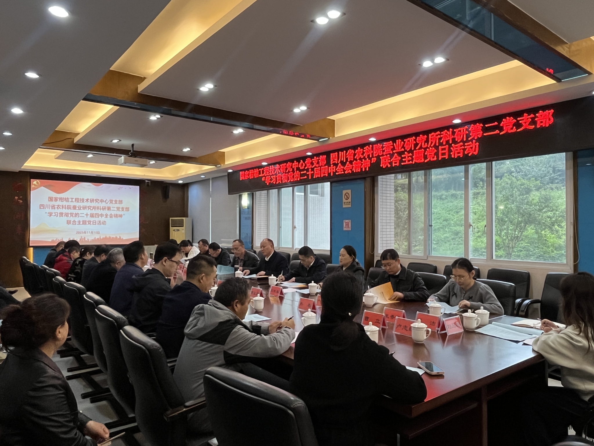 2025年11月10日下午,国家柑桔工程技术中心教师党支部与四川省农业科学院蚕业研究所科研第二党支部在我所联合举办“学习贯彻党的二十届四中全会精神”主题党日活动。活动以党建为引领,围绕科技创新与“三农”工作深度融合,深化院所合作,共谋乡村产业振兴新篇章。