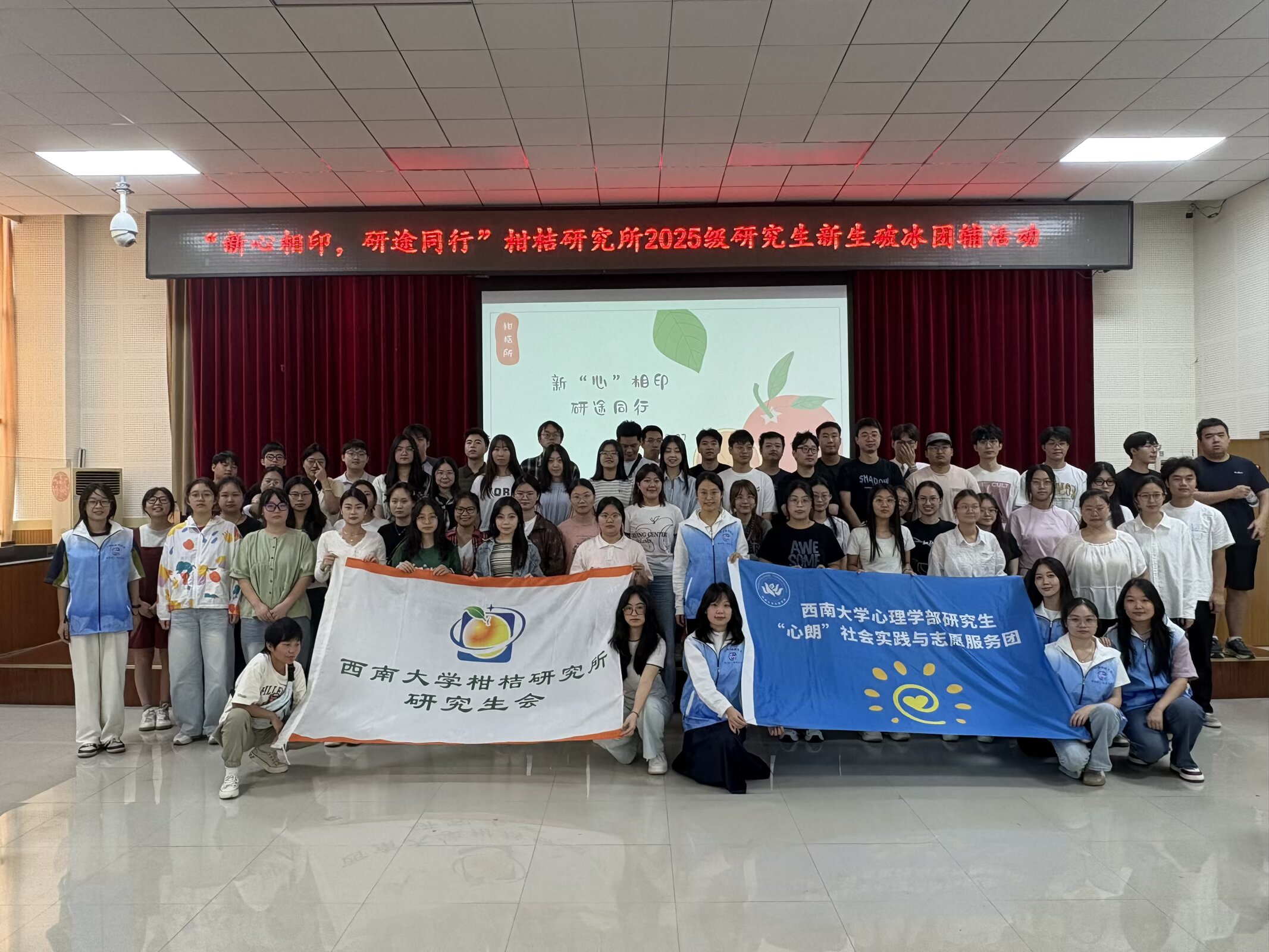 为助力2025级新生快速融入新集体,搭建情感交流的桥梁,增强集体归属感,9月27日上午,柑桔研究所团委研究生会与西南大学“心朗”社会实践及志愿服务团在柑桔研究所研究生公寓二楼多功能厅联合开展了“新‘心’相印,研途同行”主题破冰团辅活动。活动由“心朗”社会实践团队成员熊郁芃主持,为同学们带来了一场别开生面的互动体验。